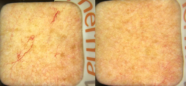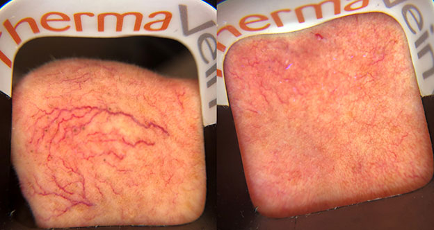 The images below were taken with a specialised camera to get a close-up view of the thread veins before and their resolution after treatment.